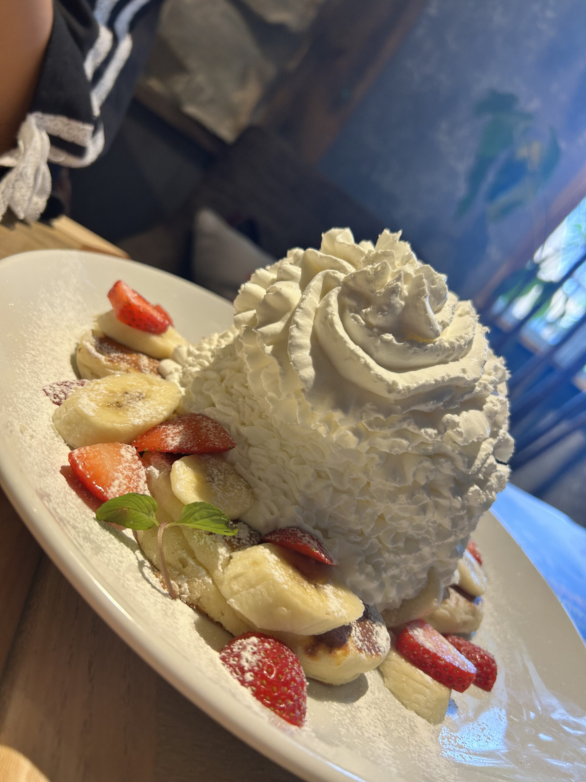ストロベリー&バナナホイップパンケーキは本当に大きかった!みんなでシェアしました。